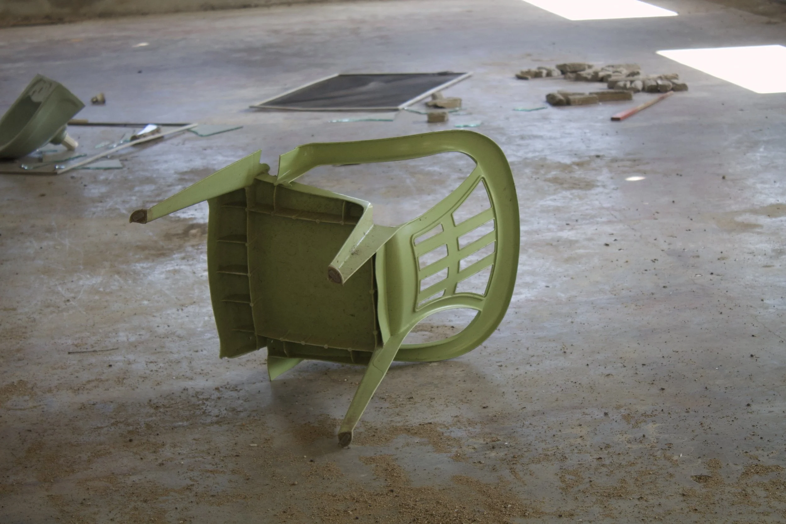 Fotografía del piso de la tienda de consumo de la Cooperativa El Chile, luego de ser destruida por el grupo armado «Los Cachos» (Credito fotografico: Calan Institute)